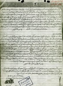 مادر عزيز: چون اين حقير مي خواهم ادامه تحصيل دهم لذا براي امتحاناتي كه در اينجا مي دهيم احتياج به ثبت نام دارم و از شما تقاضا دارم كه در مدرسه شبانه فارابي و يا اگر نشد در آموزش و پرورش شهريار ثبت نام كنيد و اين برگه كه در نامه مي باشد بدهيد در آنجا مهر كنند تا انشاءالله بعد از قبولي در سال چهارم به تحصيل در حوزه ادامه دهم از زحمات پربها و گرانقدر شما متشكرم واميدوارم خداوند اجر اعمالتان را بيش از پيش افزون كند در ضمن بعد از مهر كردن كاغذ را توسط پست به آدرس نامه ارسال فرمائيد