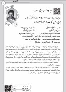 تاريخ و محل شهادت : ۱۳۶۴/۱۲/۰۱- اهواز
