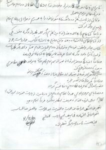 و بعد اولا برادرم محمد سلطانی قیم شرعی بر اطفال و اموال قرار دادم . و ثانیا از بابت ثلثم جمیع تصرفات معمول و مرسوم را بر مومنین و دوستان تجویز نموده تا برای آنها دقت آمد در منزل و خوردن غذا اشکالی اگر باشد در ایام مجالس و برنامه های مرسوم و معمول .