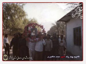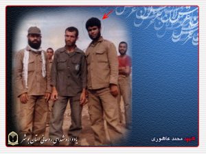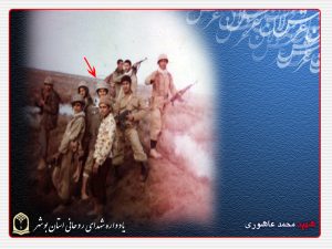 شهيد يكي از ياران با وفاي جبهه و جنگ بود . در تاريخ ۲۵/۸/۶۰ جهت اعزام به جبهه از كنگان به سوي بوشهر حركت كرديم . بعد از ظهر همان روز به بوشهر رسيديم . شب را در بوشهر گذرانديم . يادم مي آيد شهيد عاشوري قبل از اذان صبح از خواب بيدار مي شد و كليه رزمندگان را از خواب بيدار مي كرد تا نماز صبح را بجا آورند . بعد از آن براي اينكه بچه ها را به خود نزديك تر كند كلاس هاي قرآن و احكام براي آنها داير مي كرد . ساعت ۱۰ صبح به سوي شيراز حركت كرديم و ۸ صبح روز بعد به شيراز رسيديم . در طي سفر شهيد عاشوري در اتوبوس نوحه سرايي مي كرد و بچه را با جبهه و جنگ آشنا مي كرد . ما ۲ روز در شيراز مانديم و روز سوم به سوي اهواز حركت كرديم . براي آموزش ديدن يك ماه در اهواز مانديم . بعد از دوره آموزشي در تاريخ ۹/۹/۶۰ ساعت ۱۰ شب عمليات محرم شروع شد . در كنار شهيد عاشوري بودم واقعا مثل يك كوه استوار بود . دلاورانه جنگيد . مثل طوفاني كه برگهاي خزان را مي ريزدعراقي ها را از پاي در مي آورد . همه مديون شهيد عاشوري بوديم . عمليات بصورت كاملا موفقيت آميز بود و منطقه از وجود عراقي ها پاك سازي شد .