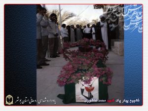 آن مرحله از عمليات كاملاً موفقيت آميز بود و منطقه از وجود بعثىها پاكسازى شد. من ديگر آقامحمد عاشورى را نديدم تا نوزدهم مهر ماه سال بعد كه پيكر شهداى تفحص شده سال ۶۱ از عينخوش را در كنگان تشييع كردند و من پشت تابوتش راه افتادم تا گلزارشهداى كنگان تا بلكه باز هم برايم سخنرانى كند و برايم روضه بخواند.